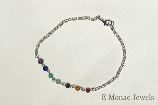 7 Chakra Anklet - 4mm Gemstone Beads - Red Jasper, Carnelian, Tiger Eye, Aventurine, Cat Eye, Lapis, Amethyst