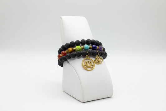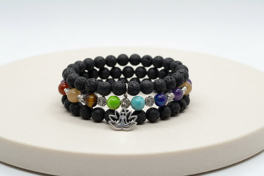 7 Healing Chakra Stack - Complete Chakra Bracelet Set with Lava Stone & Bronze Yoga Charms