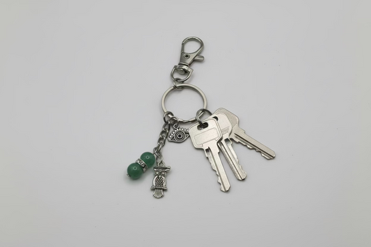 Green Aventurine Owl Evil Eye Keychain - Guardian of Success