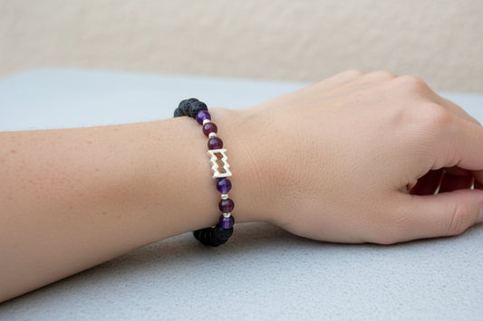 Aquarius Zodiac Bracelet - Garnet & Amethyst - 8mm Beads with Aquarius Charm - Jan/Feb
