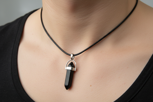 Black Tourmaline Hexagonal Point Necklace - Ultimate Protection & Energy Shielding - Root Chakra