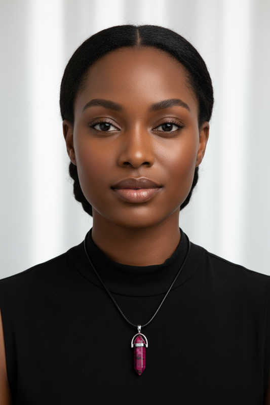 Ruby Zoisite Necklace - Rebirth & Vitality - Black Cord, Silver Clasp - Heart Chakra Healing