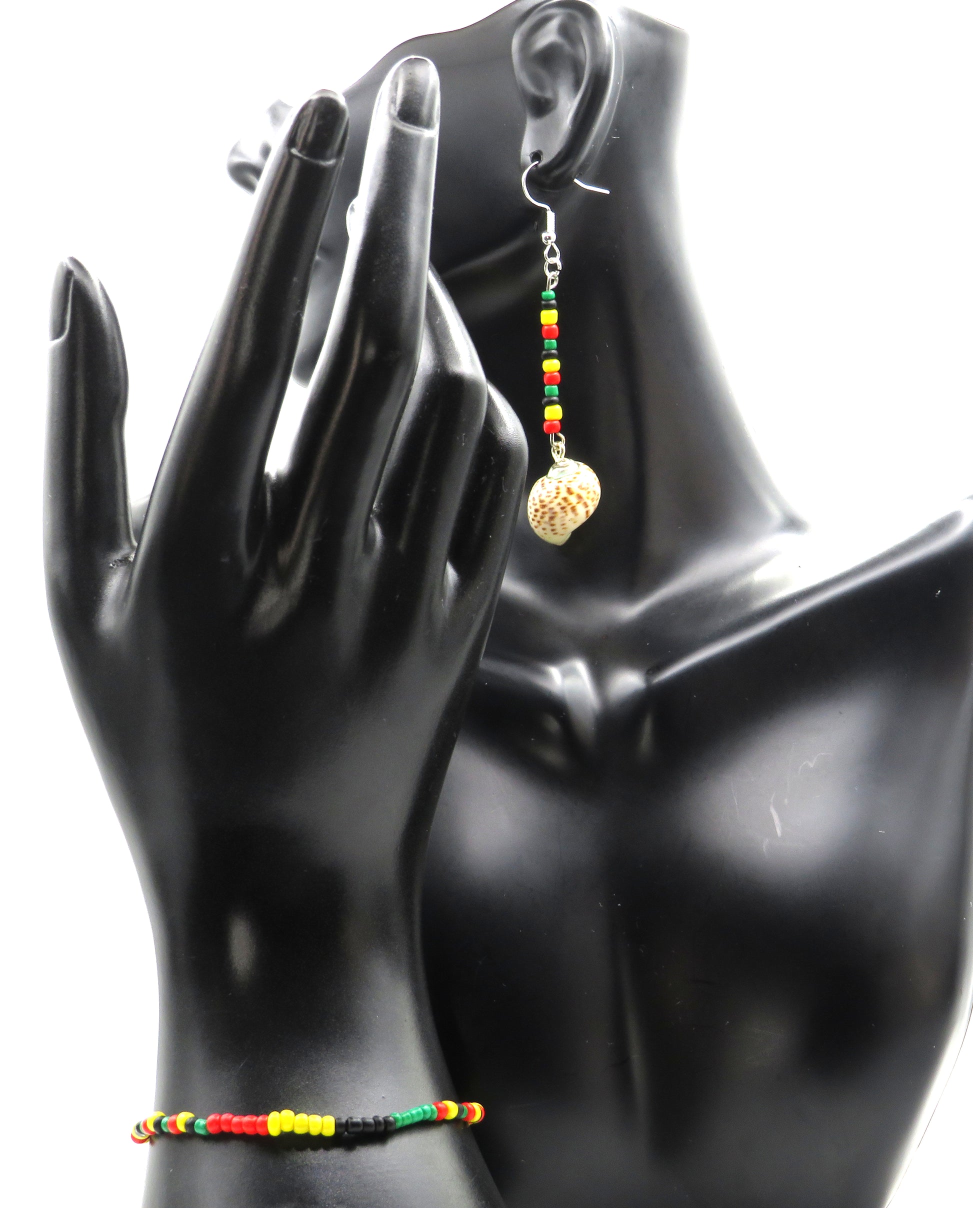 This Afro Shell Set features beautifully handcrafted seed bead earrings and a matching bracelet, perfect for adding some vibrant color to your outfit. Embrace your love for afro styles with this unique and eye-catching set. Add it to your collection of accessories today and stand out with confidence and style.