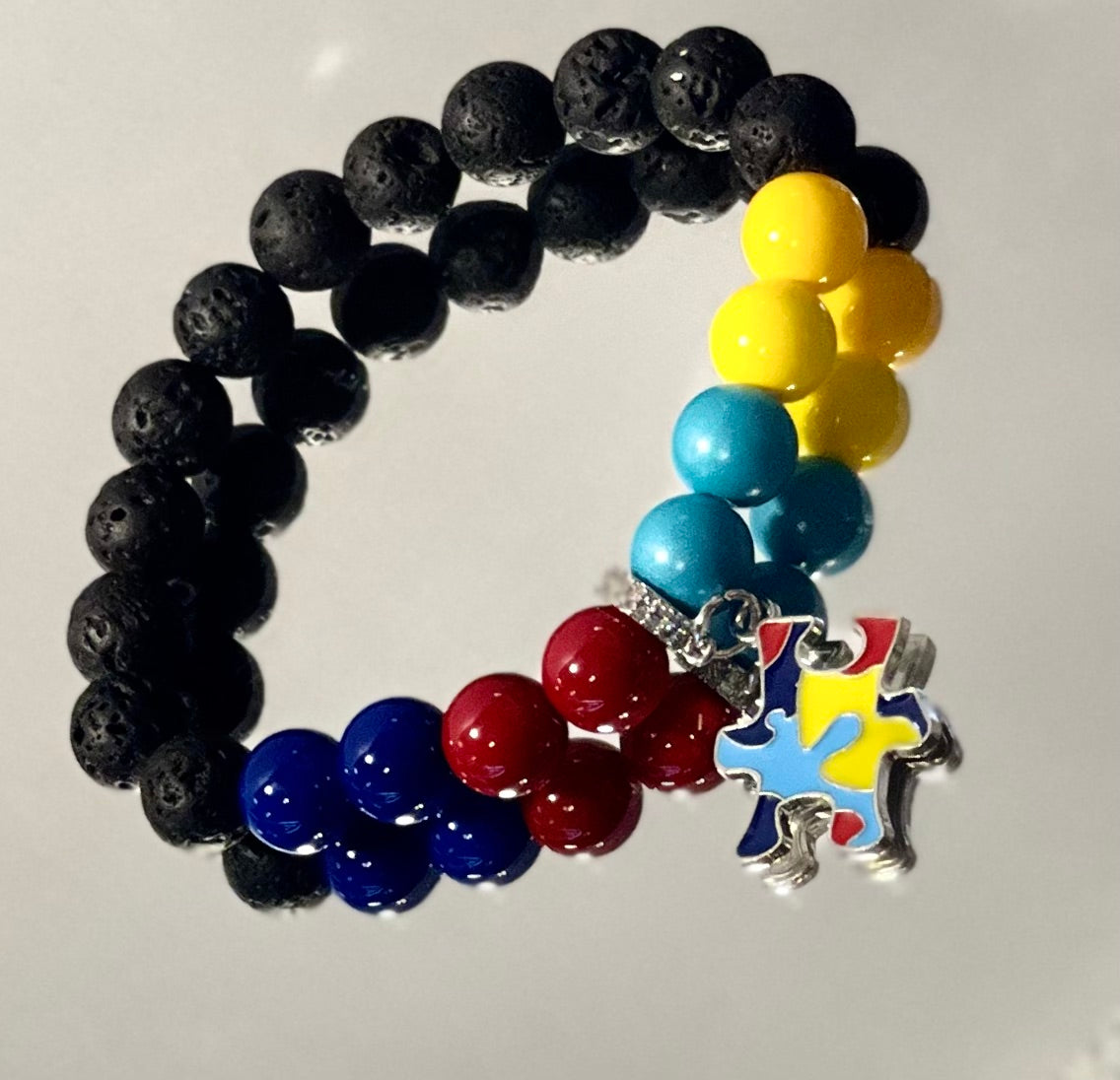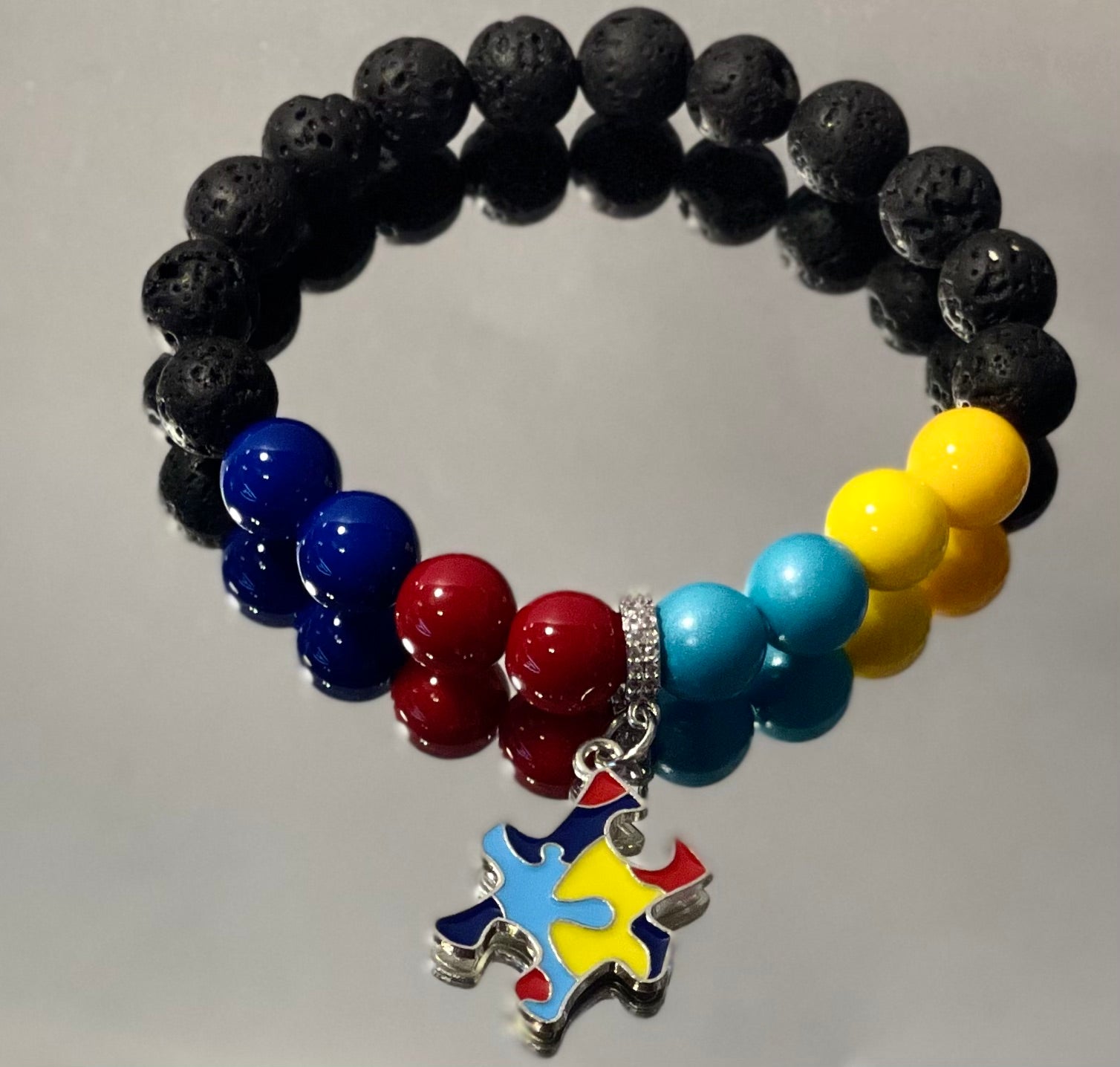 Wear your support for autism awareness with the Here Is The Love bracelet. Its handmade design features the iconic puzzle piece symbol along with a blend of glass and lava beads for an elegant look you'll love. Show off your unique style and appreciation for the cause.