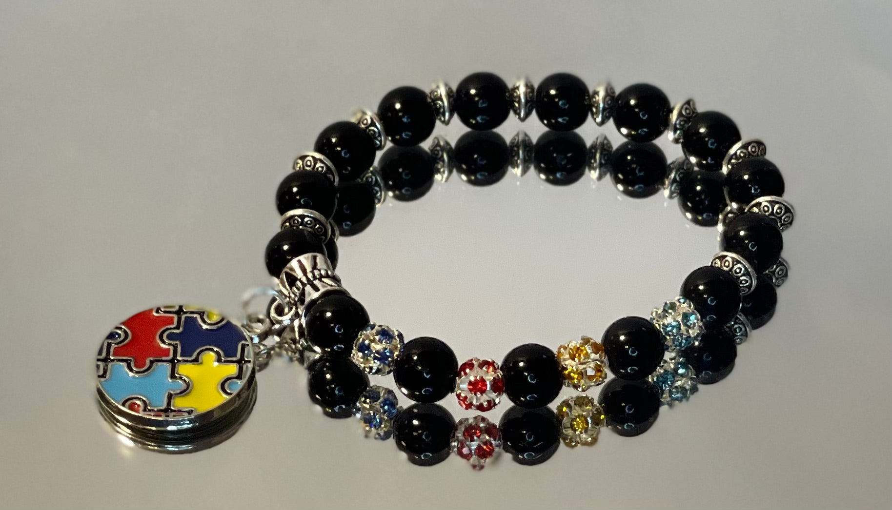 Say it loud and proud! Show your support for those you love with this stylish bracelet. With black beads and silver spacers, this unique design features an Autism Awareness Charm, making a statement of acceptance and understanding. Let your wrists show the world your love for someone with autism!