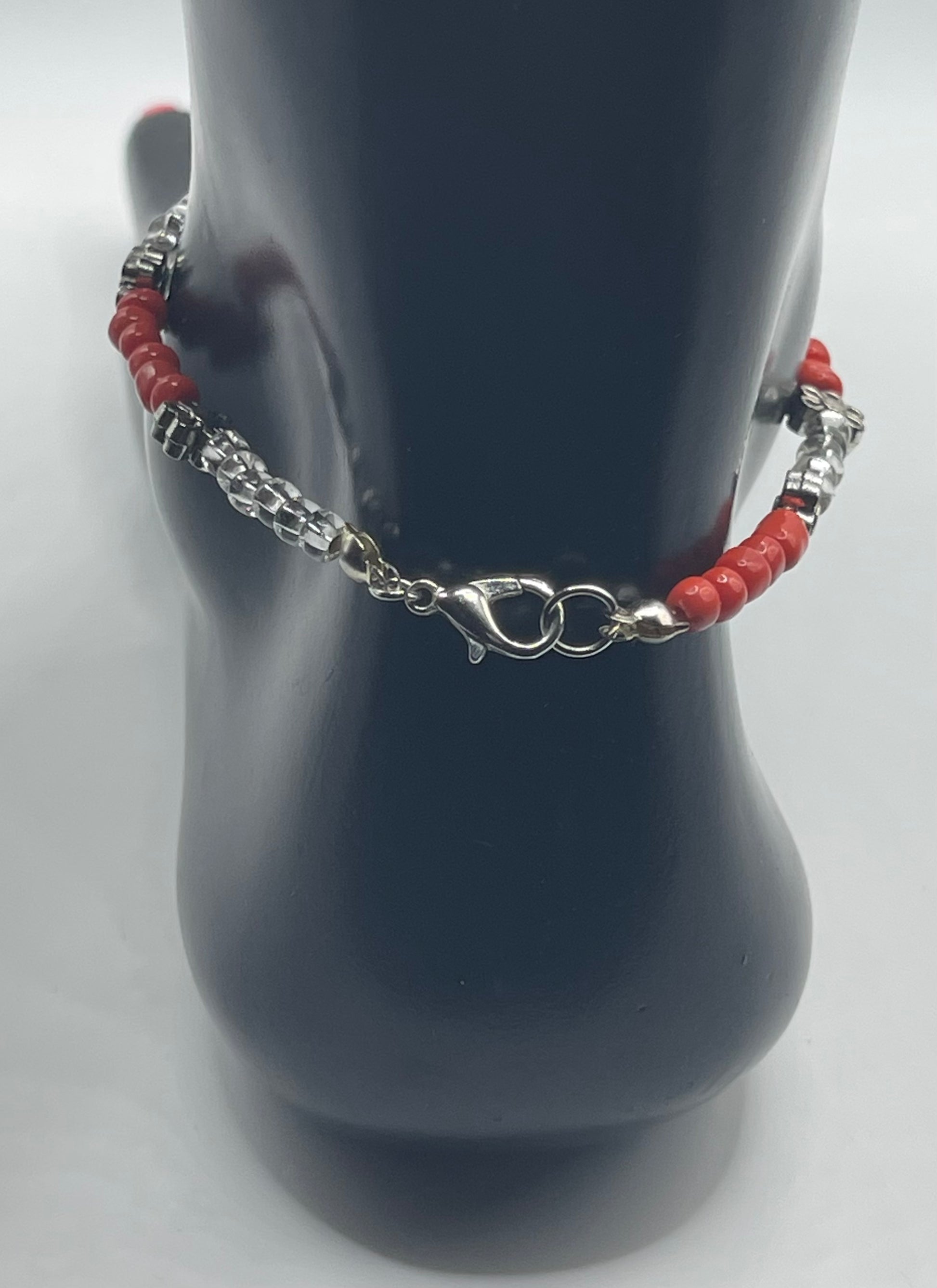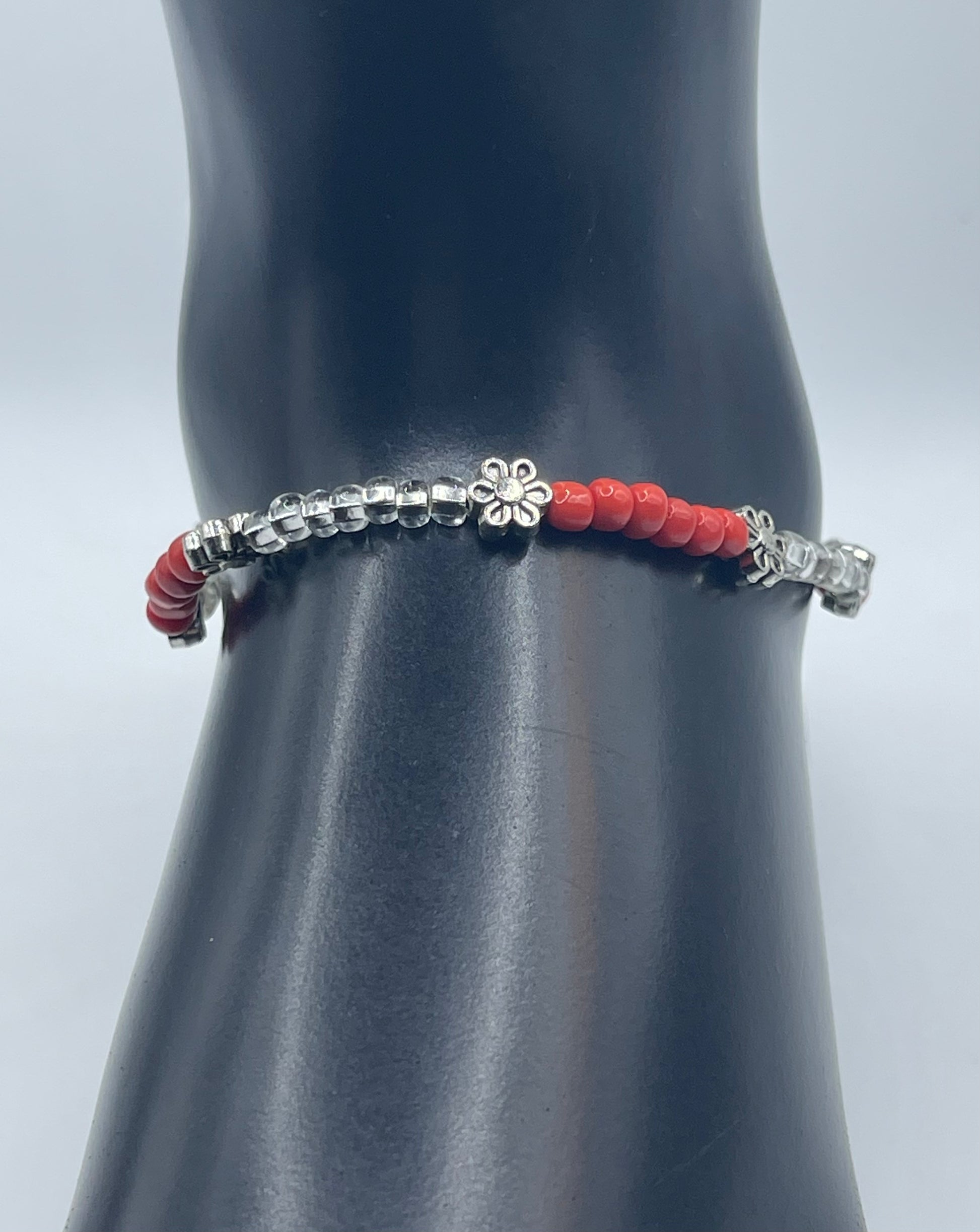 Anklets are the quintessential way to express yourself fashionably! this anklet is made up of Orange and clear seed beads and a Flower, you'll find an abundance of comfortable