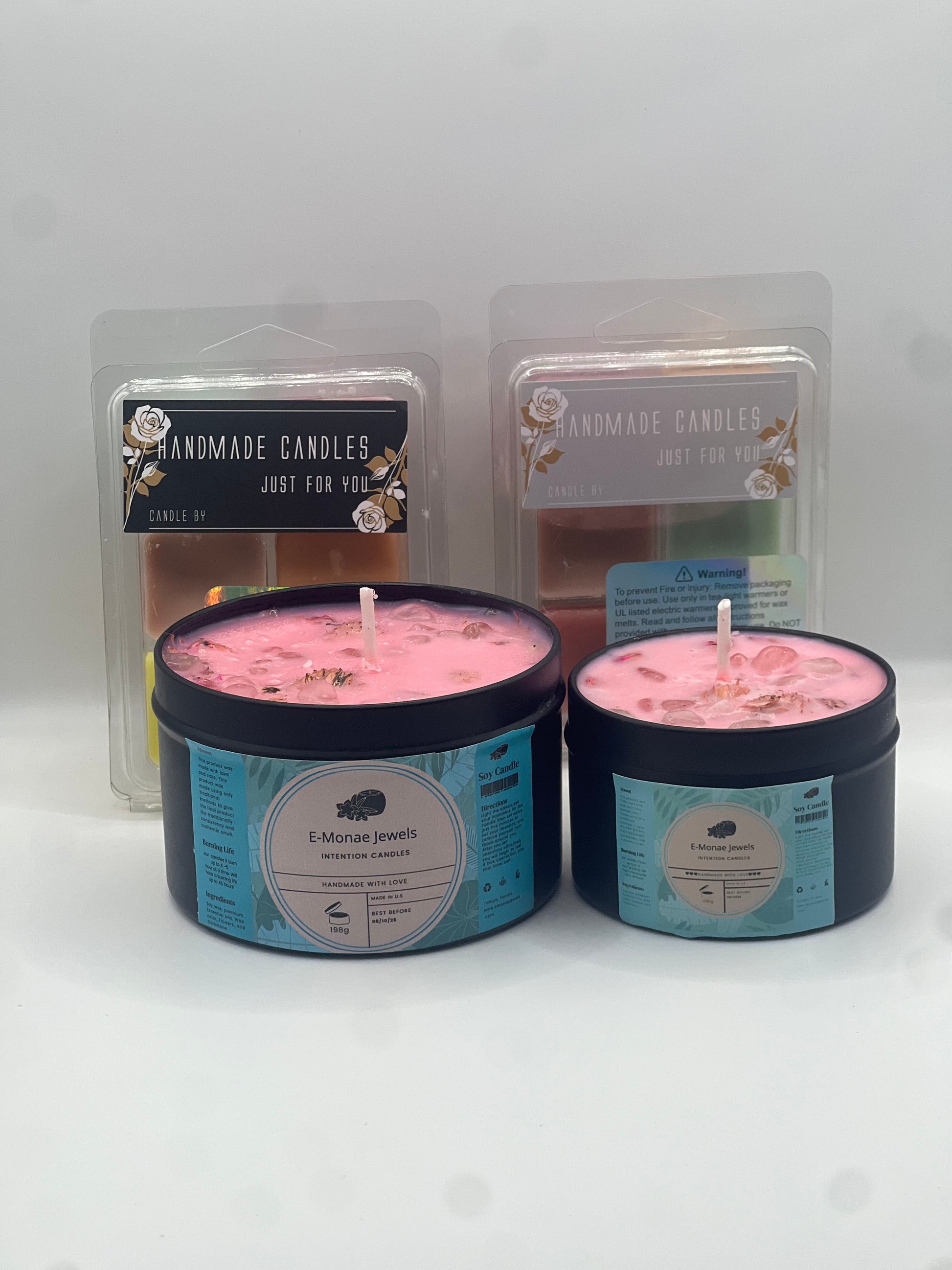 ✨ BONUS: Every candle comes with 6 complimentary mystery melts from our uplifting collection! Scents may include Abundance Bloom, Sunrise Splash, Mystique, Ocean Oasis, Sakura Kiss, Warm Nights, or Summer Lovin'.