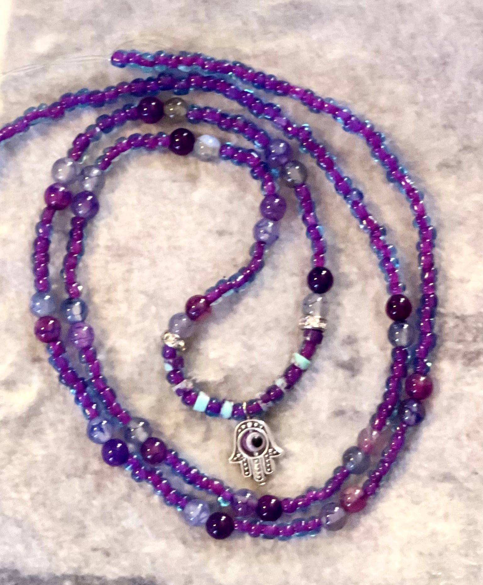 Blue stands for trust, safety, and faithfulness while purple symbolizes secrecy, majesty, and fantasy. Blue-purple is a symbol of dignity, loyalty, and autonomy. It conveys meaningful connections and values, but still captures the thrill and curiosity of what's ahead. An evil eye charm and vibrant colors remind you of the power of protection. Celebrate your journey while staying safe and secure.