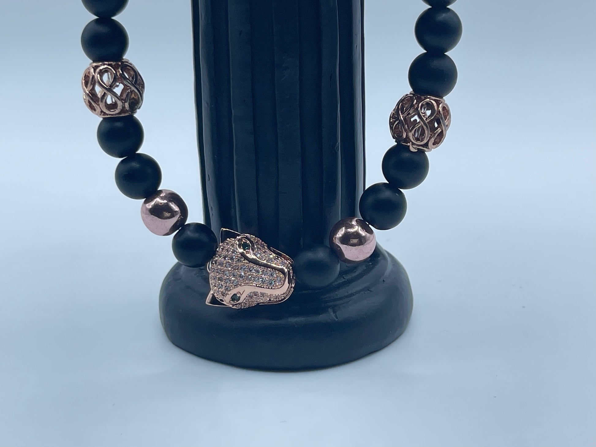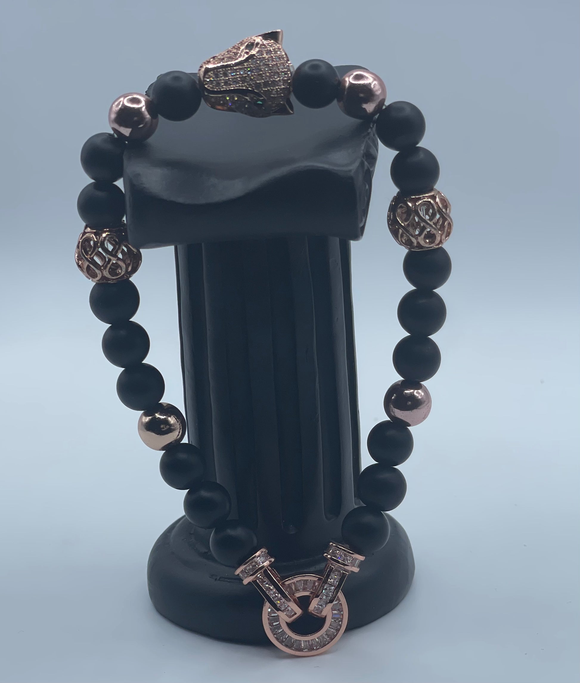 Matte Onyx and Rose Gold Hematite bracelet would make any man feel like he has it all.