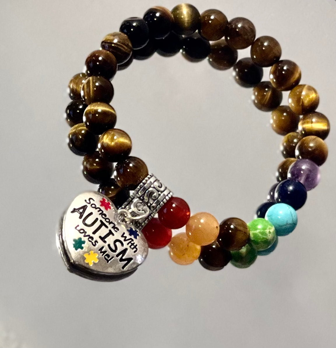 This Tiger's Eye 7 Chakra Bracelet is perfect for those looking for strength and courage! Crafted with natural stones to bring balance and healing to body and mind, this stretch bracelet is adorned with an Autism Charm – a beautiful symbol of hope and dreams. Enjoy the spiritual and physical properties of the stones and know that you are loved!