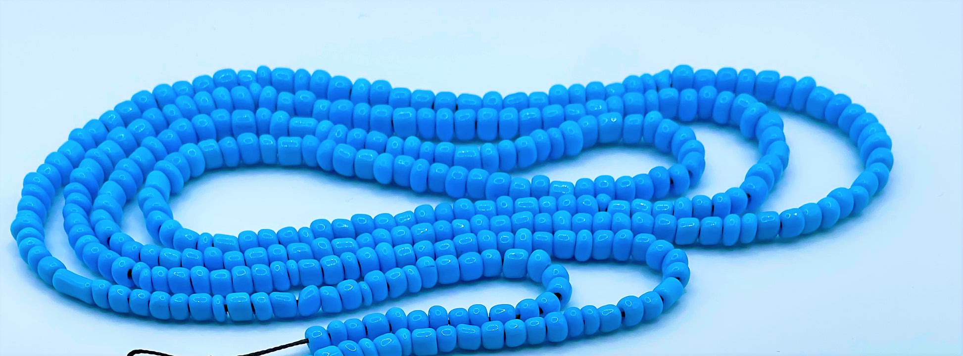 Seed beads are 6/0 these waist beads are tie on. The color blue offer a sense of healing, harmony, and insight, promoting feelings of truth. Each waist bead is crafted to fit you perfectly, highlighting your unique beauty and grace. From one unique woman to another, create the perfect look for any occasion.